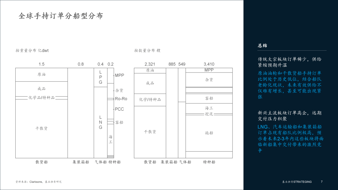如果说现有船队是当下的现实,那么手持订单就是未来2-3年供给格局最清晰的“预言”。订单数据与现有船队的比例揭示了市场对未来的预期和资本的流向,预示着供给侧的结构性分化将进一步加剧。